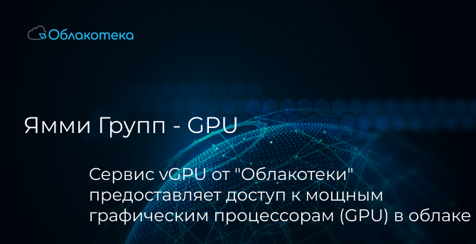 Для выполнения задач по разработке и обучению моделей машинного обучения "Ямми Групп" использует виртуальные графические станции (vGPU) на базе облачной платформы "Облакотека". Сервис vGPU от "Облакотека" предоставляет доступ к мощным графическим процессорам (GPU) в облаке, что значительно ускоряет обучение сложных моделей машинного обучения и обработку больших объемов данных.